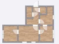 Byt má tři pokoje - ložnici, dětský pokoj a obývací místnost, kuchyň s kuchyňskou linkou (el. 4 plotýnkový sporák s pečící troubou, vestavnou lednici s mrazákem), koupelnu se sprchovým koutem a toaletou a také prostornou šatnu, do které umístíte spoustu sezónních věcí. Navíc ještě výklenek, který může sloužit třeba jako malá pracovna. Na podlahách vinyl a dlažba. Všechna okna jsou vybavena venkovními žaluziemi. K dispozici kolárna v domě a vlastní sklepní kóje.