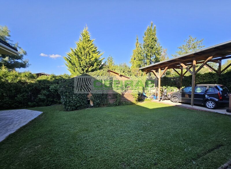 Das Haus befindet sich auf einem weitläufigen Grundstück mit 1.734 m² Fläche, dessen überwiegender Teil aus einem gepflegten Garten besteht. Der Garten ist nach Südwesten ausgerichtet und schließt direkt an zwei miteinander verbundene Terrassen an.